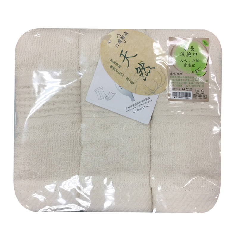 MIT低敏親膚天然無染純棉加長洗臉巾(3入/包)